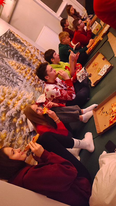 "Mikołajkowy Wieczór" klasy 8 pełen małych momentów, które tworzą wielkie wspomnienia. Było tworzenie świątecznych lampionów, seans filmowy z dreszczykiem oraz wspólne śpiewanie (prawie do utraty głosu!)