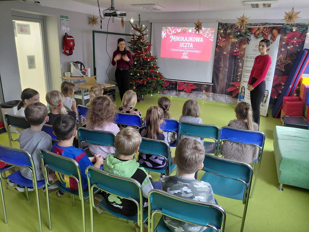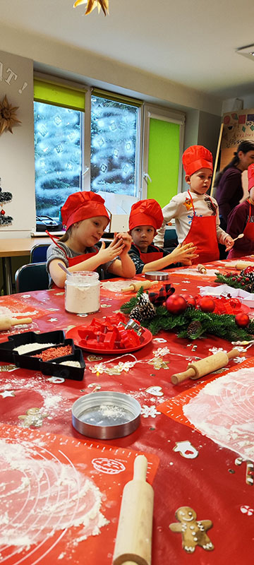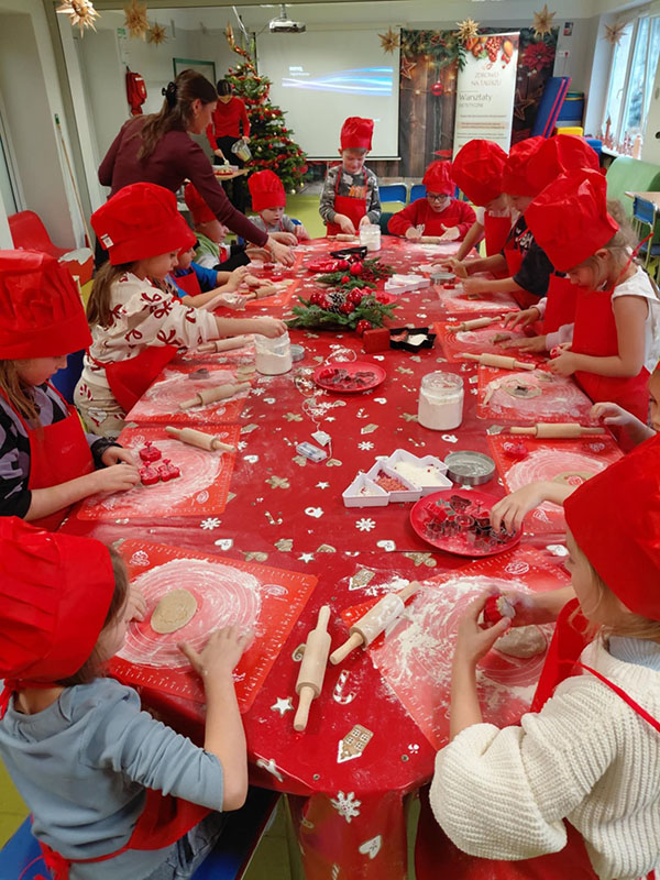 Klasy pierwsze uczestniczyły w warsztatach dietetycznych "Mikołajkowa uczta", które łączyły świąteczną atmosferę z nauką zdrowych nawyków żywieniowych. Podczas zajęć uczniowie dowiedzieli się, jak komponować zbilansowane posiłki w okresie świątecznym, poznali wartości odżywcze popularnych produktów oraz nauczyli się, jak dokonywać świadomych wyborów żywieniowych. Podczas części praktycznej uczniowie piekli zdrowszą wersję pierniczków, wykorzystując wartościowe składniki. Była to doskonała okazja, aby przekonać się, że świąteczne smakołyki mogą być nie tylko pyszne, ale również bardziej przyjazne dla zdrowia.