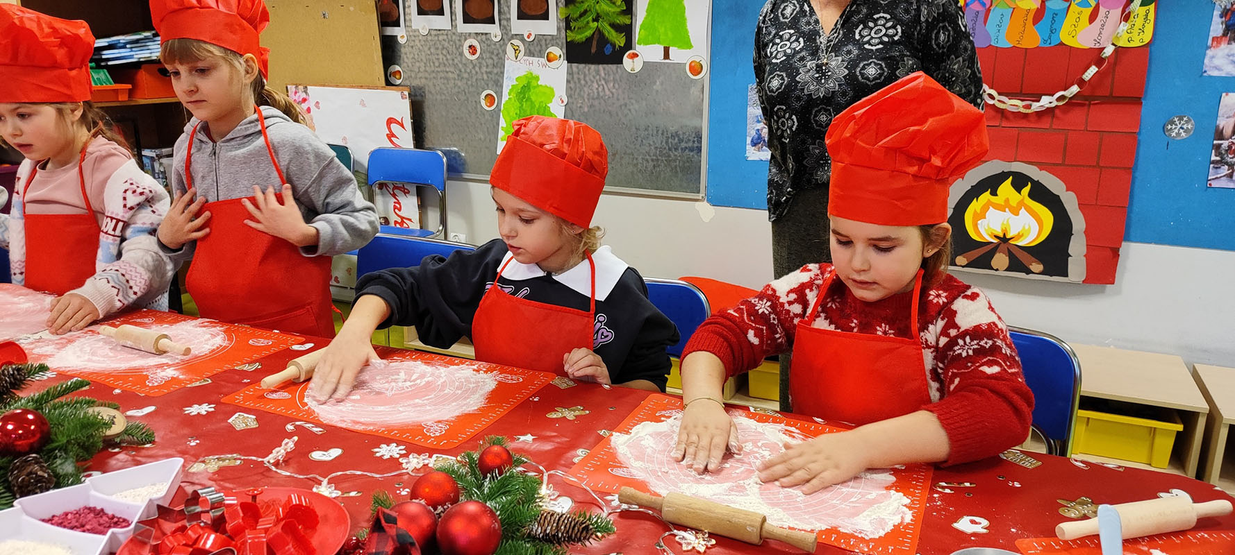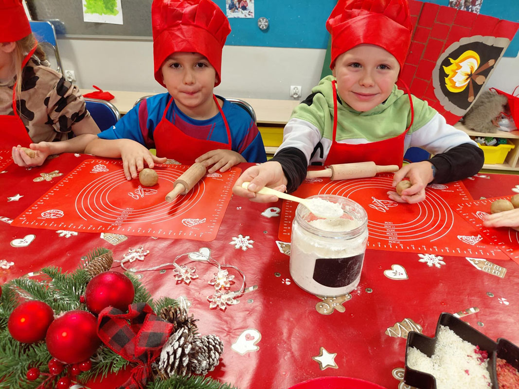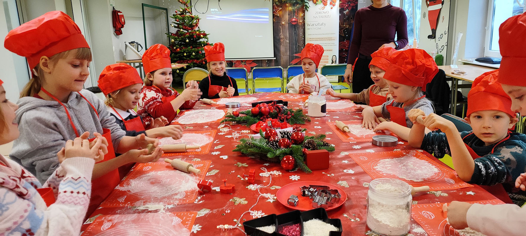 Klasy pierwsze uczestniczyły w warsztatach dietetycznych "Mikołajkowa uczta", które łączyły świąteczną atmosferę z nauką zdrowych nawyków żywieniowych. Podczas zajęć uczniowie dowiedzieli się, jak komponować zbilansowane posiłki w okresie świątecznym, poznali wartości odżywcze popularnych produktów oraz nauczyli się, jak dokonywać świadomych wyborów żywieniowych. Podczas części praktycznej uczniowie piekli zdrowszą wersję pierniczków, wykorzystując wartościowe składniki. Była to doskonała okazja, aby przekonać się, że świąteczne smakołyki mogą być nie tylko pyszne, ale również bardziej przyjazne dla zdrowia.