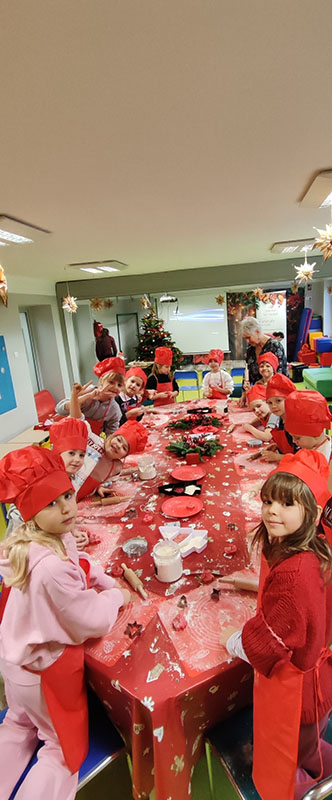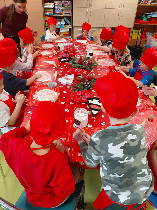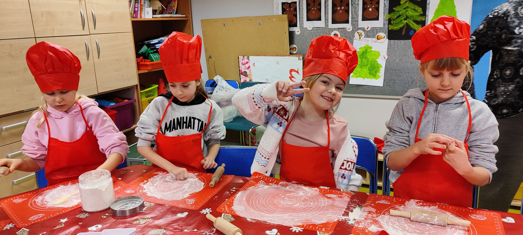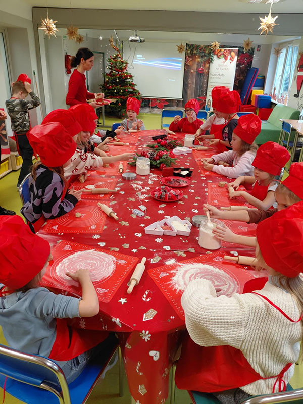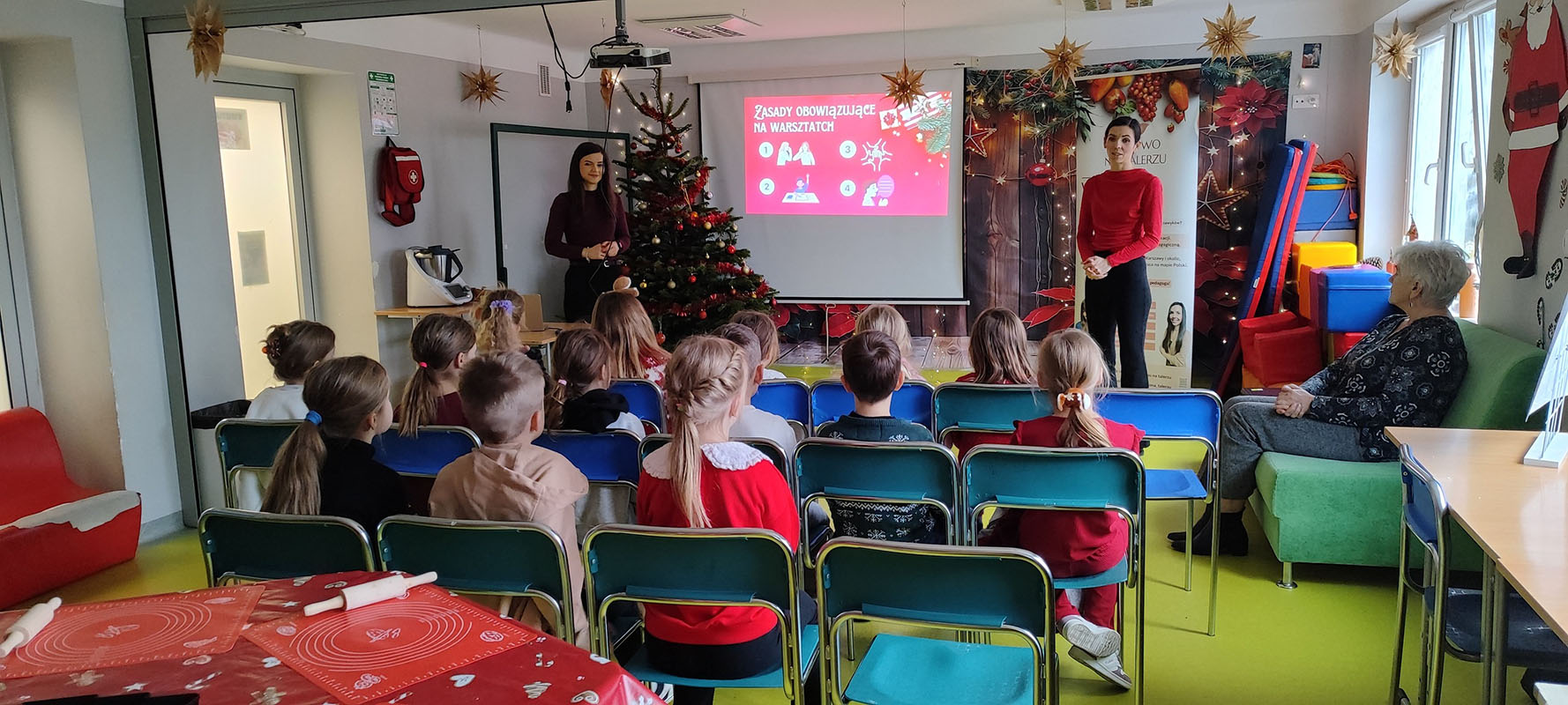 Klasy pierwsze uczestniczyły w warsztatach dietetycznych "Mikołajkowa uczta", które łączyły świąteczną atmosferę z nauką zdrowych nawyków żywieniowych. Podczas zajęć uczniowie dowiedzieli się, jak komponować zbilansowane posiłki w okresie świątecznym, poznali wartości odżywcze popularnych produktów oraz nauczyli się, jak dokonywać świadomych wyborów żywieniowych. Podczas części praktycznej uczniowie piekli zdrowszą wersję pierniczków, wykorzystując wartościowe składniki. Była to doskonała okazja, aby przekonać się, że świąteczne smakołyki mogą być nie tylko pyszne, ale również bardziej przyjazne dla zdrowia.