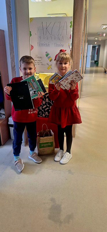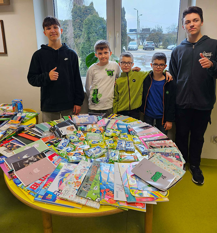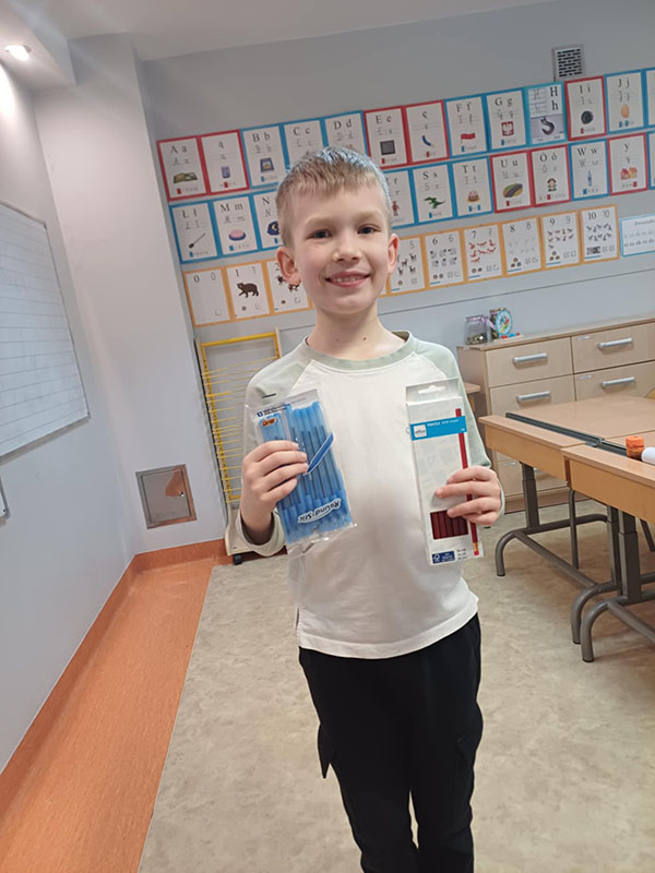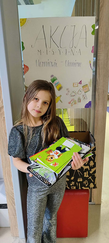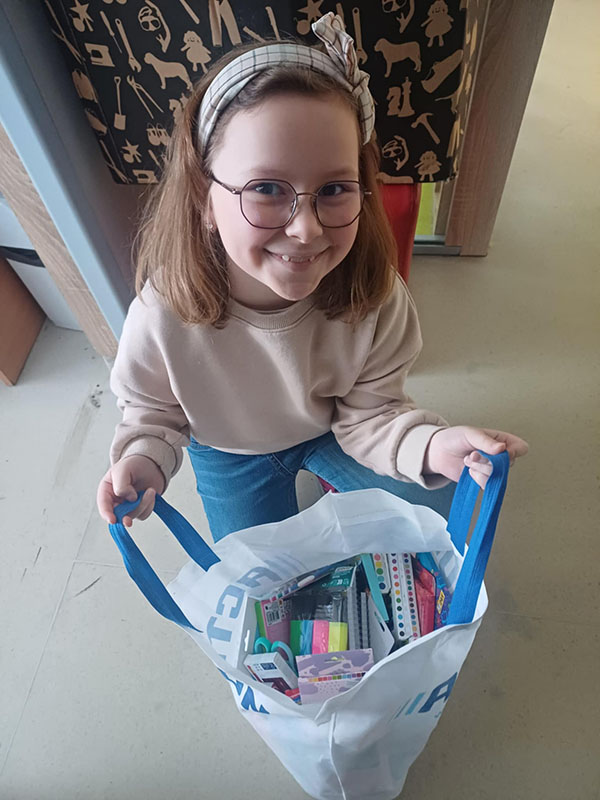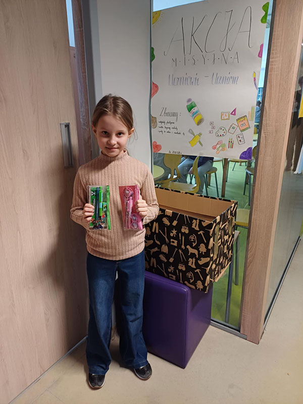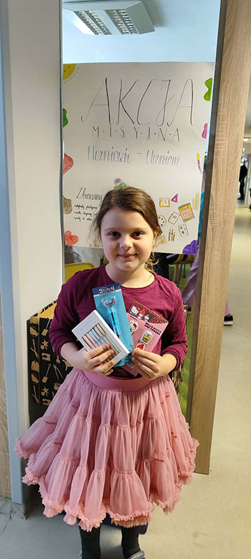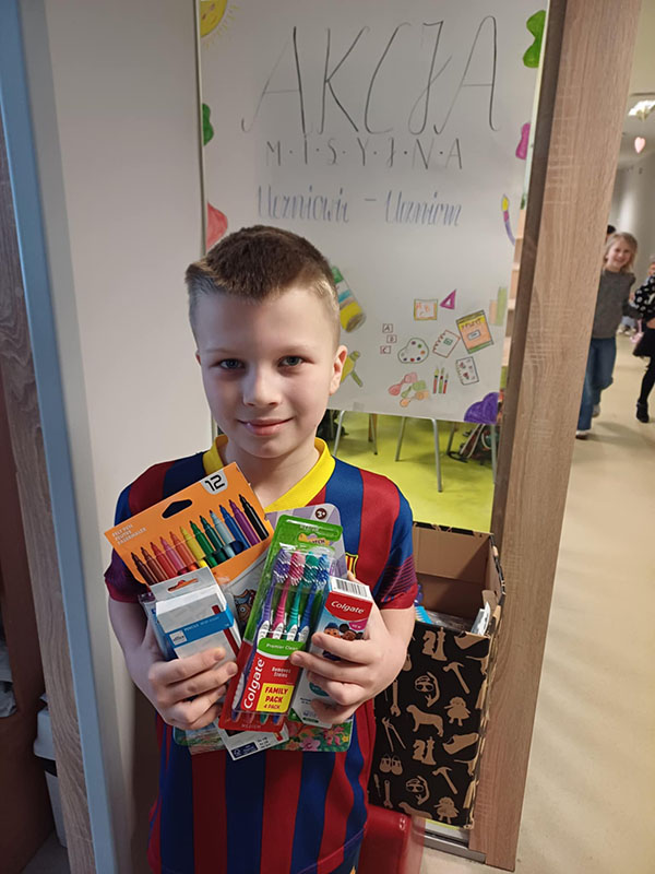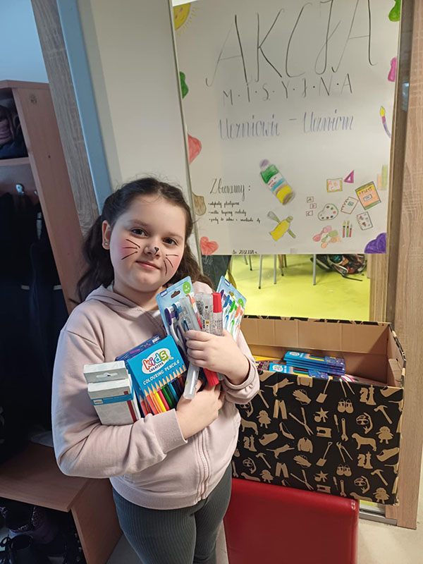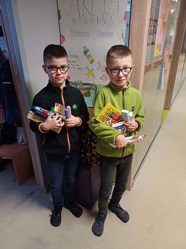 W ramach zbiórki zgromadziliśmy nowe, nieużywane przybory szkolne, takie jak: długopisy, kredki, zeszyty, bloki rysunkowe, mazaki, teczki, plecaki, ołówki, gumki do ścierania oraz wszystko to, co może przydać się uczniowi w codziennej nauce jak i podstawowe artykuły higieny osobistej.