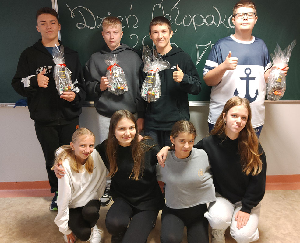 „Dzień Chłopaka w 8 klasie – wyjątkowy, bo ostatni w tym składzie! To już nasz finałowy rok w podstawówce, więc świętujemy podwójnie: raz, że chłopaki mają swoje święto, a dwa – że jeszcze raz możemy cieszyć się wspólnymi chwilami. Za chwilę każdy z nas pójdzie swoją drogą, ale te wspomnienia zostaną na zawsze. Było trochę śmiechu, trochę prezentów i oczywiście dużo dobrej energii – czyli wszystko to, co najlepsze w naszej klasie! 8-klasa górą!
